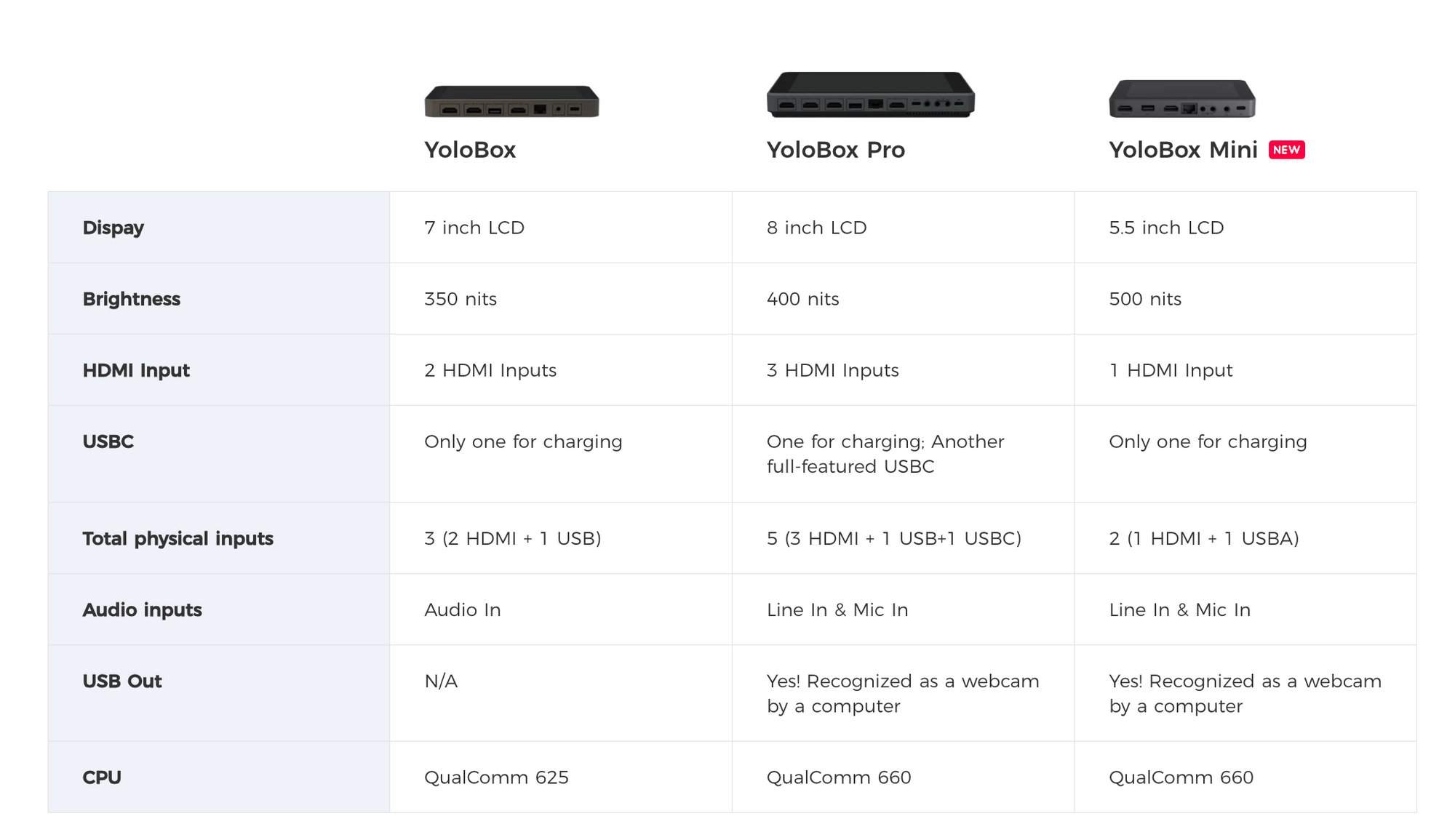 Comparing YoloBox vs. Pro vs. Mini